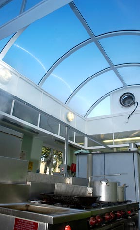 Polycarbonate and clear glass glazing may provide direct daylight lighting. Direct light passes through rooflight glazing without any disruption or interference and enters the building as a straight beam.